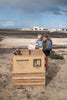 Playa Pallet is a wooden beach bin made from recycled materials, placed across Fuerteventura to encourage daily beach cleanups. Launched in 2018, the project has been successful in keeping coastlines clean and preventing waste from reentering the ocean. Each bin helps remove about 1 ton of waste annually, and has helped encourage and nudge local beachgoers to take action and be part of the solution.